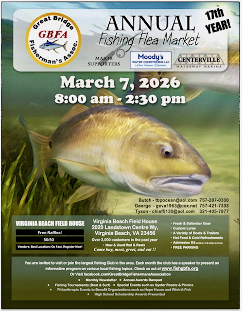 The fishing Flea Market has moved to the Virginia Beach Field House;